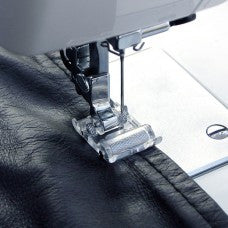 Aids in smooth sewing of speciality fabric e.g. leather, velvet, napped or looped surfaces like towel.